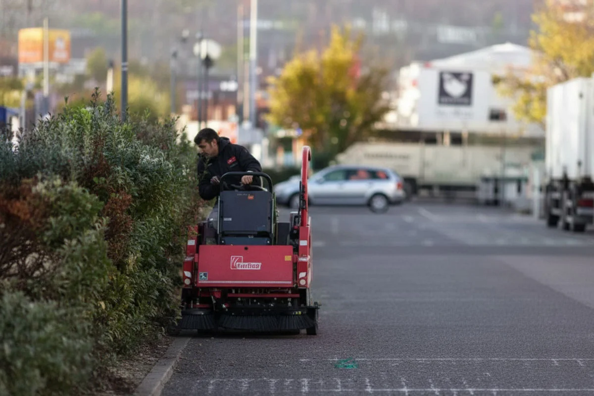 Mit hangeführten Kehrmaschinen, Kommunaltraktoren und einer Aufsitzkehr-/saugmaschine schaffen wir Leistungen bis 20.000m² pro Stunde.